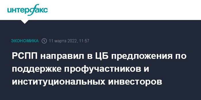 Москва. 11 марта. INTERFAX.RU - Российский союз промышленников и предпринимателей (РСПП) направил в Банк России предложения по поддержке профучастников и институциональных инвесторов в период повышенной волатильности на финансовом рынке, следует из опубликованных документов на сайте РСПП.