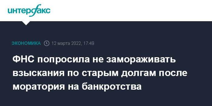 ФНС попросила не замораживать взыскания по старым долгам после моратория на банкротства
