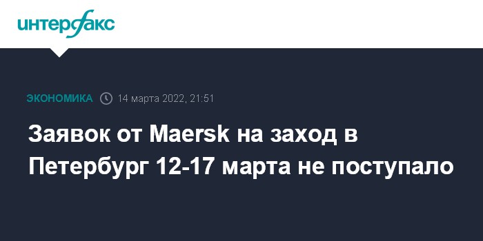 Согласно данным портала Marine Traffic, контейнеровоз Maersk Vayenga на выходных разгружался в "Петролеспорту" и на "Первом контейнерном терминале" (терминалы Global Ports). При этом, согласно данным автоматизированной системы службы капитана порта, на период 12-17 марта Maersk пока не подавал заявки на заходы в Петербург.