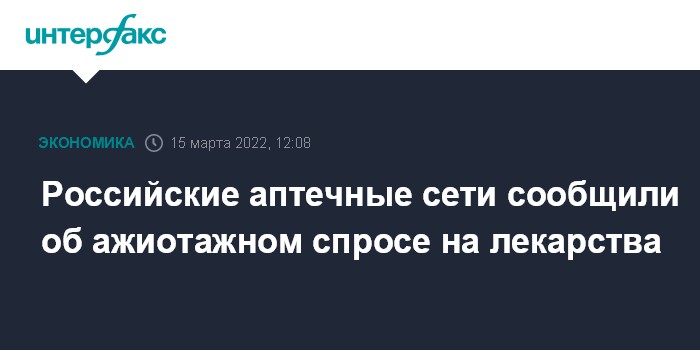 Москва. 15 марта. INTERFAX.RU - В России зафиксирован ажиотажный спрос граждан на лекарственные препараты, из-за которого некоторые пациенты сталкиваются с их дефицитом в аптеках, сообщила исполнительный директор Российской ассоциации аптечных сетей (РААС) Нелли Игнатьева.