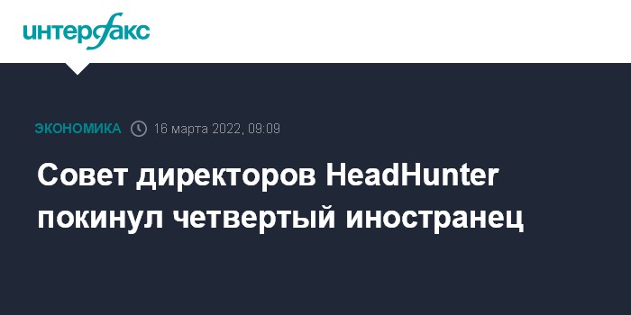 Москва. 16 марта. INTERFAX.RU - Совет директоров HeadHunter покинул Мортен Хойинг - он подал в отставку с соответствующей должности 14 марта на фоне геополитики, говорится в сообщении рекрутинговой компании.