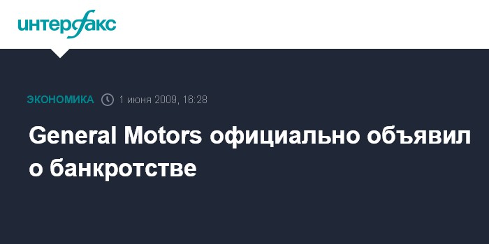Москва. 1 июня. INTERFAX.RU - Крупнейший американский автопроизводитель General Motors (GM) обратился в понедельник в суд Нью-Йорка с заявлением о банкротстве. Как сообщает агентство Bloomberg, это необходимо для создания после реорганизации более конкурентоспособной компании.