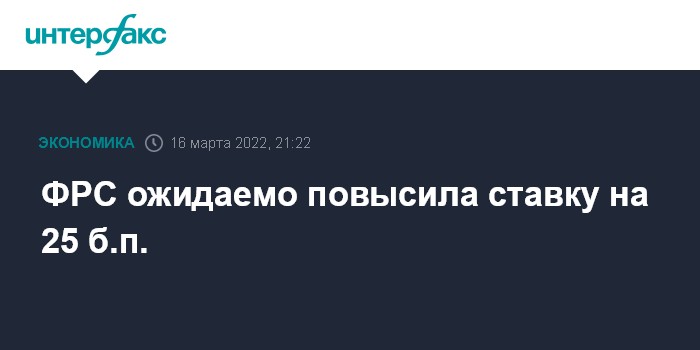 Москва. 16 марта. INTERFAX.RU - Федеральная резервная система (ФРС) повысила процентную ставку по федеральным кредитным средствам (federal funds rate) на 25 базисных пунктов, теперь диапазон ставки составляет от 0,25% до 0,5% годовых, говорится в коммюнике Федерального комитета по операциям на открытом рынке (FOMC) по итогам мартовского заседания.