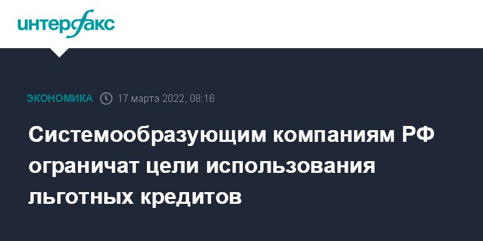 Москва. 17 марта. INTERFAX.RU - Программа льготного кредитования системообразующих организаций, которую запускает федеральное правительство, будет предусматривать ограничения в части использования средств.