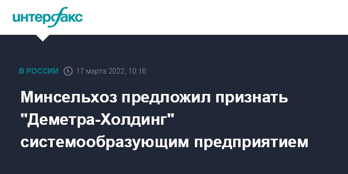 Минсельхоз предложил признать "Деметра-Холдинг" системообразующим предприятием