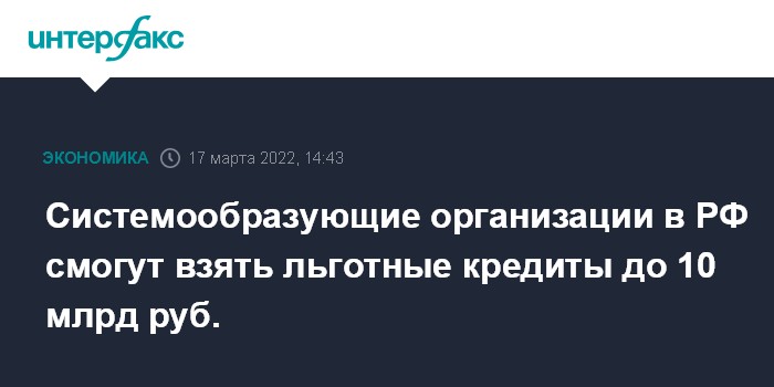 Системообразующие организации в РФ смогут взять льготные кредиты до 10 млрд руб.