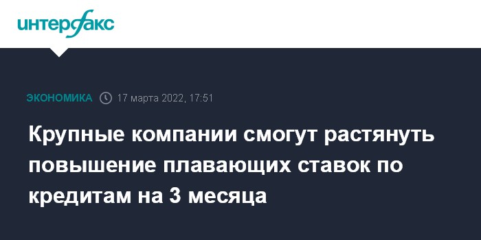 Крупные компании смогут растянуть повышение плавающих ставок по кредитам на 3 месяца