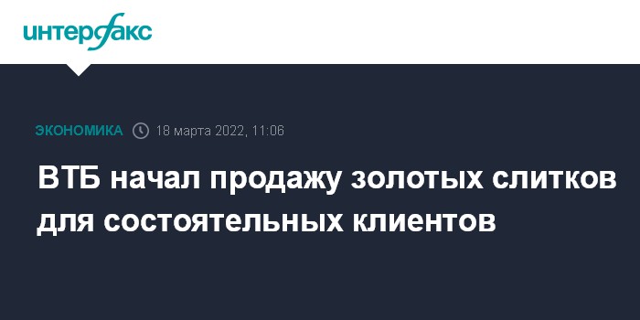 Москва. 18 марта. INTERFAX.RU - ВТБ запускает продажу инвестиционных драгоценных слитков для состоятельных клиентов, говорится в сообщении банка.