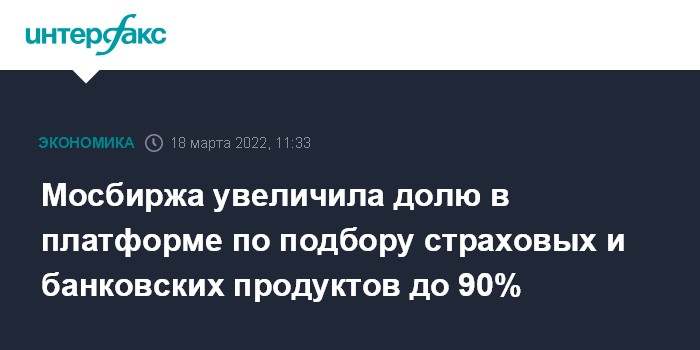 Мосбиржа увеличила долю в платформе по подбору страховых и банковских продуктов до 90%
