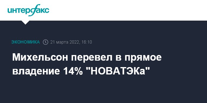 Москва. 21 марта. INTERFAX.RU - Председатель правления ПАО "НОВАТЭК" Леонид Михельсон оформил прямое владение пакетом в 14,3925% акций компании, которыми ранее владел контролируемый им фонд SWGI Growth Fund (Cyprus) Limited.