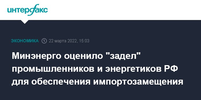 Минэнерго оценило "задел" промышленников и энергетиков РФ для обеспечения импортозамещения