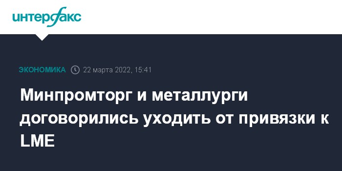 Москва. 22 марта. INTERFAX.RU - Минпромторг РФ и металлурги договорились уходить от привязки внутренних цен к Лондонской бирже металлов (LME), рассчитывать их в рублях. Об этом заявил министр промышленности и торговли РФ Денис Мантуров журналистам.