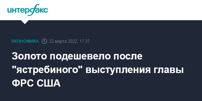 Москва. 22 марта. INTERFAX.RU - Цены на золото снижаются во вторник после "ястребиных" заявлений председателя Федеральной резервной системы (ФРС) США Джерома Пауэлла, пишет MarketWatch.