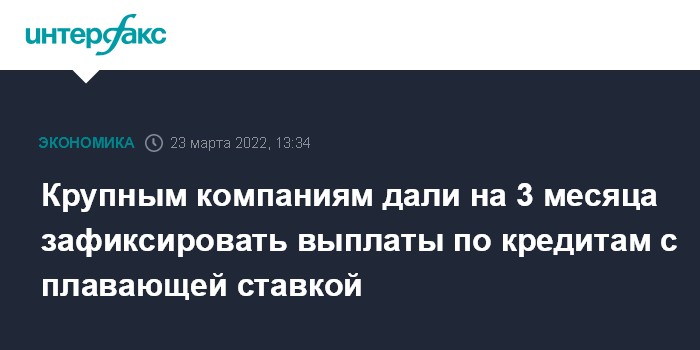 Крупным компаниям дали на 3 месяца зафиксировать выплаты по кредитам с плавающей ставкой