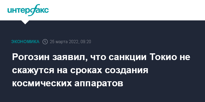 "Япония ввела санкции в отношении корпорации космического приборостроения - АО "Российские космические системы" (РКС), входящей в состав государственной корпорации "Роскосмос". Цель - ограничить ее возможности по выполнению государственного оборонного заказа и госконтрактов в интересах наших спутникостроительных фирм", - написал Рогозин в официальном телеграм-канале.