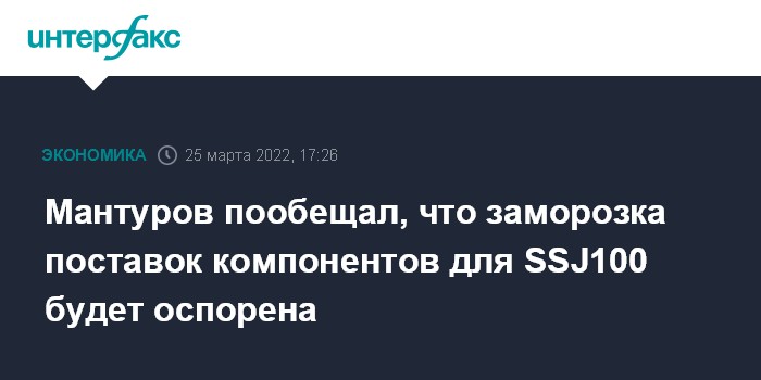 Мантуров пообещал, что заморозка поставок компонентов для SSJ100 будет оспорена