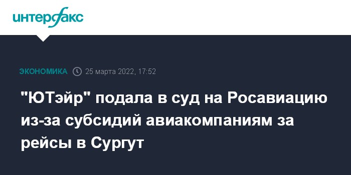 "ЮТэйр" подала в суд на Росавиацию из-за субсидий авиакомпаниям за рейсы в Сургут