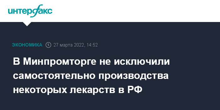 В Минпромторге не исключили самостоятельно производства некоторых лекарств в РФ