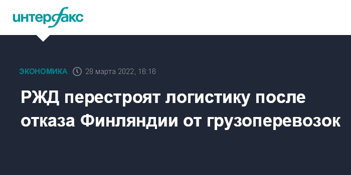 Москва. 28 марта. INTERFAX.RU - ОАО "РЖД" сообщило, что перестраивает логистику на фоне закрытия грузоперевозок с Финляндией.