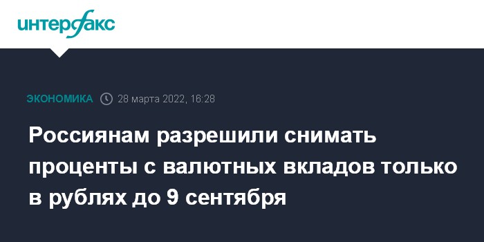 Россиянам разрешили снимать проценты с валютных вкладов только в рублях до 9 сентября