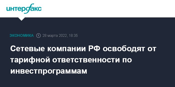Сетевые компании РФ освободят от тарифной ответственности по инвестпрограммам