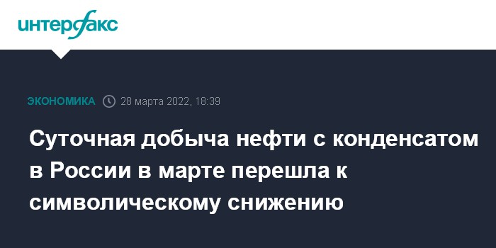 Суточная добыча нефти с конденсатом в России в марте перешла к символическому снижению