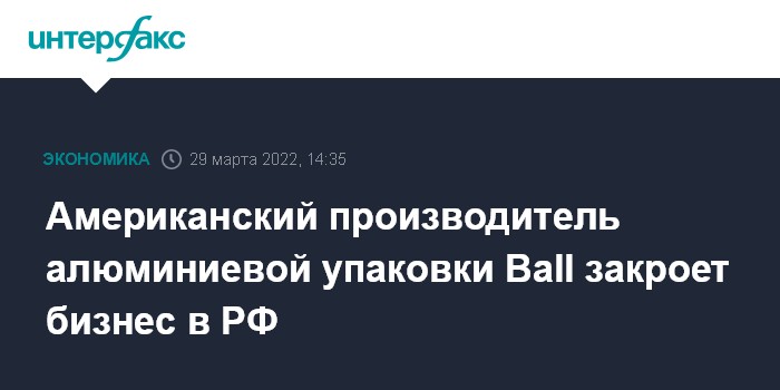 Москва. 29 марта. INTERFAX.RU - Американская Ball Corporation, крупный производитель алюминиевой упаковки, заявила о закрытии принадлежащих ей трех заводов в России.