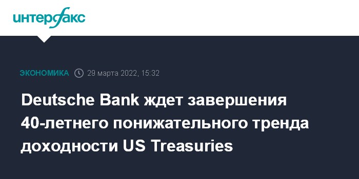 Deutsche Bank ждет завершения 40-летнего понижательного тренда доходности US Treasuries
