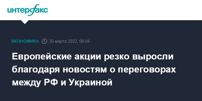 Европейские акции резко выросли благодаря новостям о переговорах между РФ и Украиной