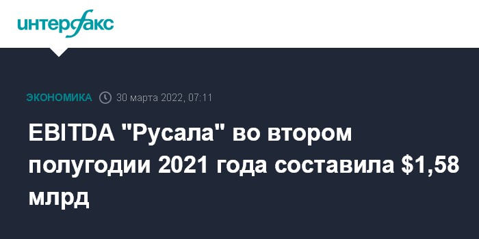 Москва. 30 марта. INTERFAX.RU - Скорректированная EBITDA "Русала" во втором полугодии 2021 года выросла в 2,4 раза к данным годичной давности, составив $1,578 млрд, говорится в сообщении компании.
