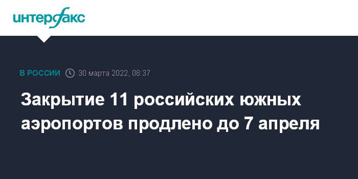 Закрытие 11 российских южных аэропортов продлено до 7 апреля