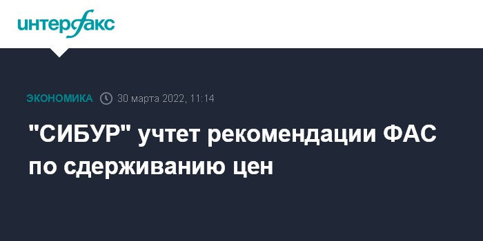 "СИБУР" учтет рекомендации ФАС по сдерживанию цен