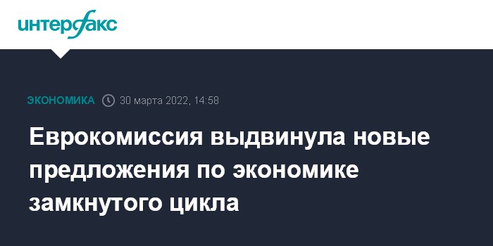 Москва. 30 марта. INTERFAX.RU - Еврокомиссия (ЕК) представила в среду пакет предложений в рамках "зеленого курса" ЕС, чтобы сделать нормой в Евросоюзе выпуск надежных продуктов и стимулировать бизнес-модели экономики замкнутого цикла ("циркулярной").