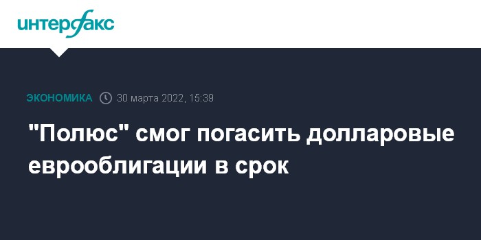 Москва. 30 марта. INTERFAX.RU - Золотодобывающая компания "Полюс" сообщила об успешном погашении выпуска долларовых еврооблигаций.