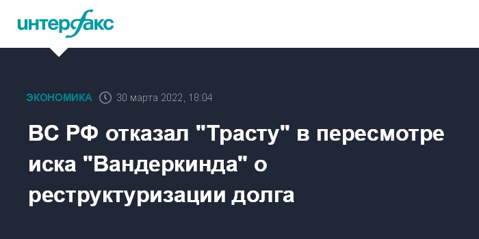 ВС РФ отказал "Трасту" в пересмотре иска "Вандеркинда" о реструктуризации долга