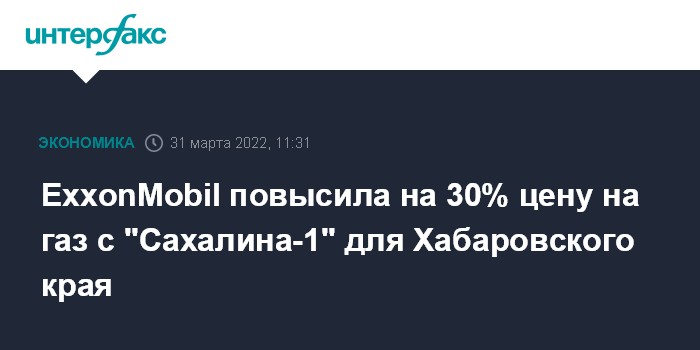 Москва. 31 марта. INTERFAX.RU - Американская ExxonMobil примерно на 30% повысила цену на газ, поставляемый с проекта "Сахалин-1" в Хабаровский край, из-за привязки его цены к стоимости нефти на рынке Японии, сообщил министр экономического развития региона Виктор Калашников.