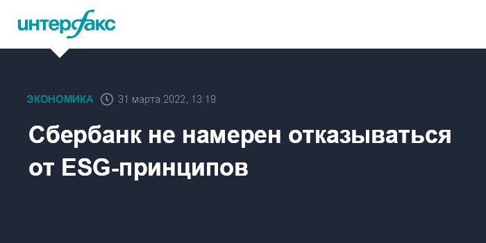 "Мы сохраняем, конечно, ESG в полном объеме, у нас продолжается внедрение ESG-практик. Понятно, что мы какие-то дорогостоящие проекты, может быть, сократим, но достижение углеродной нейтральности Сбером по операционной деятельности к 2030 году - эта задача сохраняется", - сказала она.