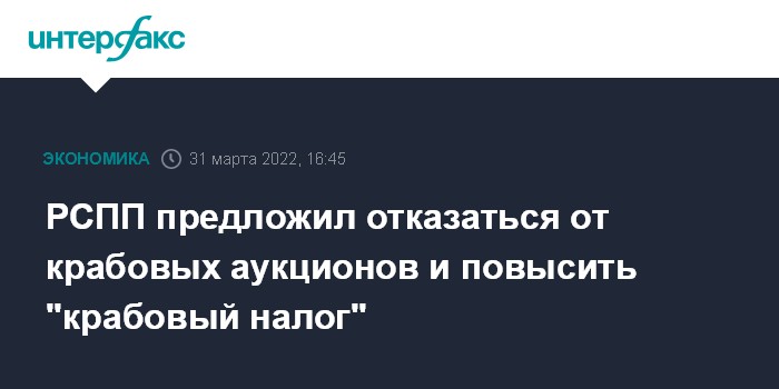 Москва. 31 марта. INTERFAX.RU - Российский союз промышленников и предпринимателей (РСПП) предложил правительству отказаться от проведения крабовых аукционов и высказал альтернативный вариант регулирования отрасли. Его суть - повышение ставок сборов на крабов.