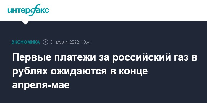 Москва. 31 марта. INTERFAX.RU - Практическая реализация нового порядка оплаты поставок российского газа в Европу - в рублях - начнется в конце апреля - мае, пояснил источник, знакомый с ситуацией на рынке энергоносителей.