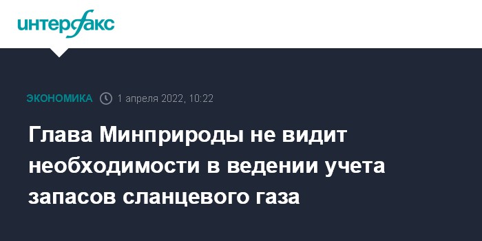 Глава Минприроды не видит необходимости в ведении учета запасов сланцевого газа