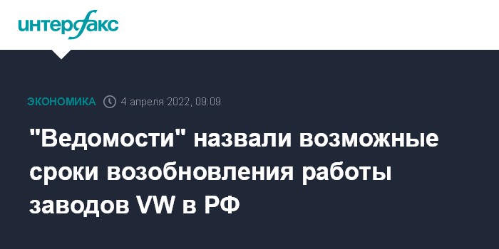 "Ведомости" назвали возможные сроки возобновления работы заводов VW в РФ