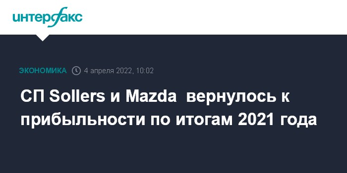 СП Sollers и Mazda вернулось к прибыльности по итогам 2021 года