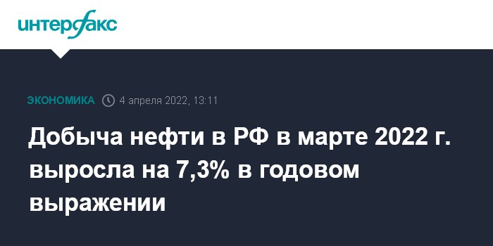 Добыча нефти в РФ в марте 2022 г. выросла на 7,3% в годовом выражении