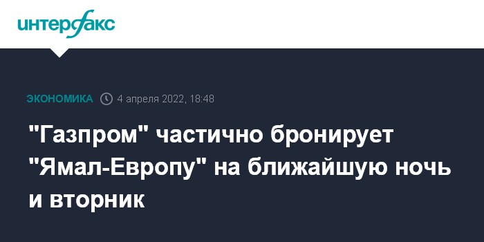 "Газпром" частично бронирует "Ямал-Европу" на ближайшую ночь и вторник