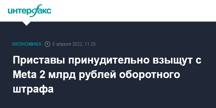 Москва. 5 апреля. INTERFAX.RU - Российские приставы возбудили в отношении компании Meta (признана экстремистской организацией и запрещена в России) дело о принудительном взыскании оборотного штрафа около 2 млрд рублей за неоднократный отказ удалить запрещенный в России контент.