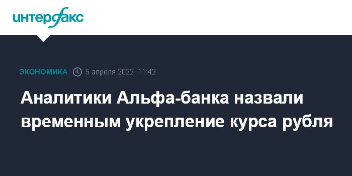 Москва. 5 апреля. INTERFAX.RU - Укрепление курса российской валюты выглядит временным на фоне падения российских доходов от экспорта нефти, полагают экономисты Альфа-банка.