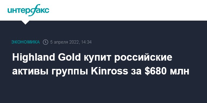 Highland Gold купит российские активы группы Kinross за $680 млн