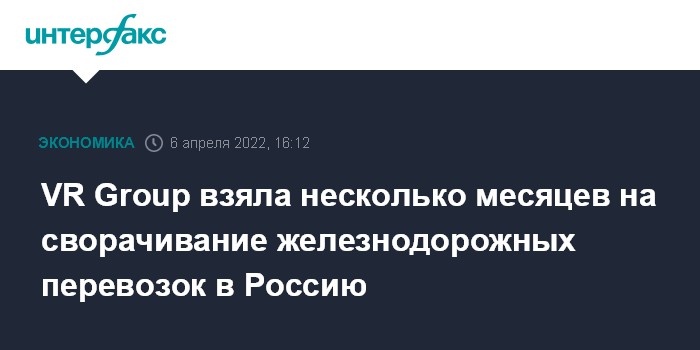 Сейчас санкции Евросоюза не запрещают железнодорожное сообщение с Россией. Поэтому расторжение контрактов на грузоперевозки, заключенные между VR и его внутренними клиентами должно проходить по порядку, прописанному в контракте, и согласовываться с клиентами. Цель VR - как можно быстрее прекратить грузовые перевозки, но, по оценкам, этот процесс займет несколько месяцев, сообщила компания.