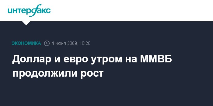 Москва. 4 июня. INTERFAX.RU - Валютные торги на ММВБ в четверг начались с заметного падения курса рубля и к доллару, и к евро. В первые минуты торгов доллар вырос на 16 копеек по сравнению с закрытием предыдущего дня - до 30,95 руб./$1, а евро прибавил 25 копеек, подорожав до 43,9 руб./EUR1. Таким образом, рыночная стоимость бивалютной корзины в первые минуты торгов выросла на 20 копеек - до 36,78 рубля.