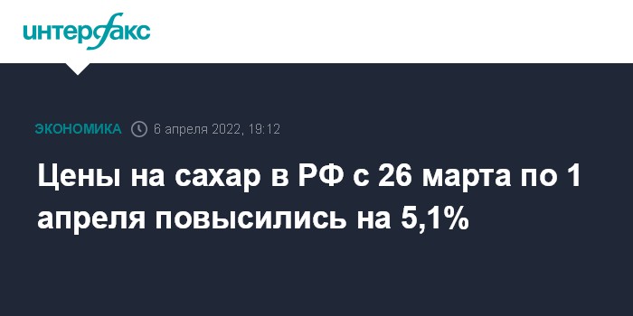 Цены на сахар в РФ с 26 марта по 1 апреля повысились на 5,1%